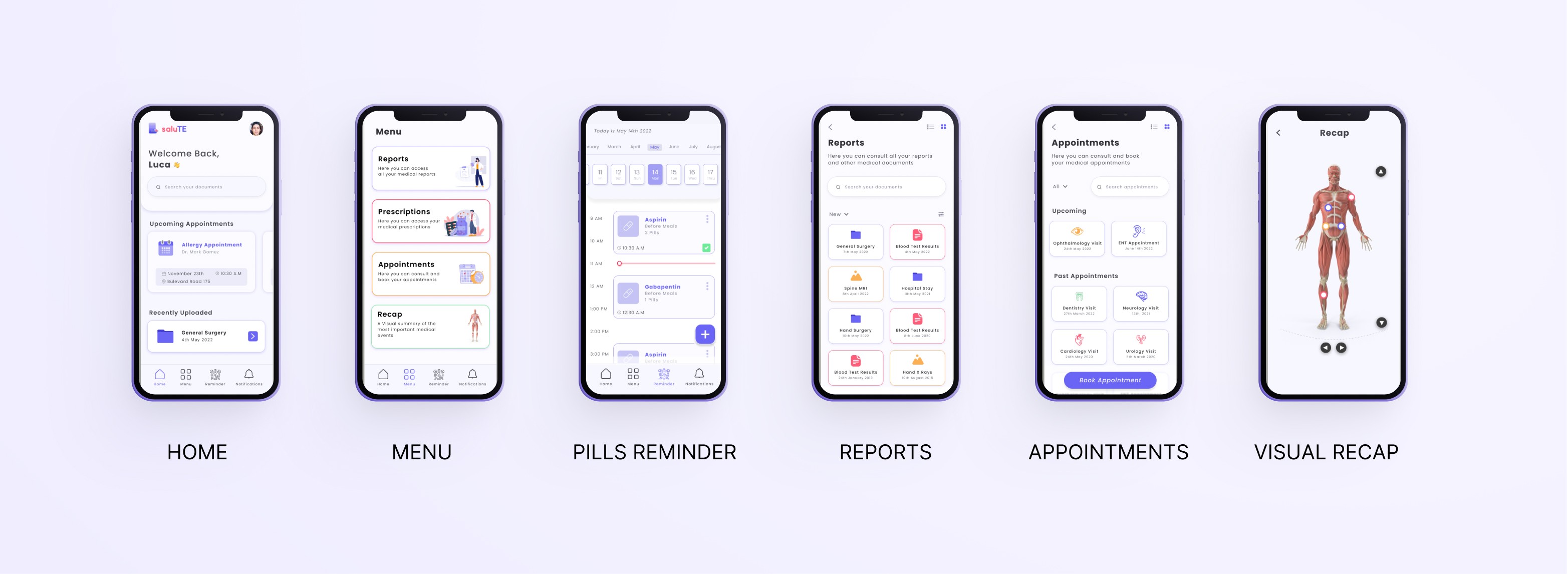 A mobile app to consult the medical history, book appointments, set reminders, and observe a recap of the most important events of the health history.